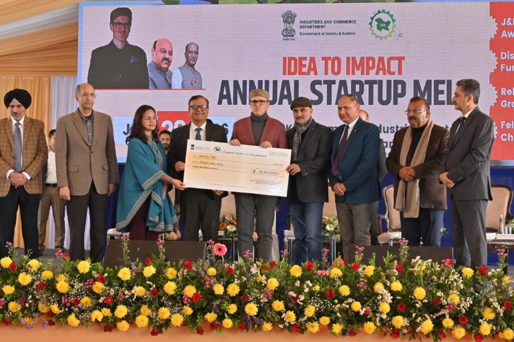 The event celebrated innovation and entrepreneurship, with awards being conferred upon promising startups and incubators for their contributions to the evolving startup ecosystem. SMVDU TBIC, which had earlier pitched for financial support, was awarded funding of Rs.50 lakhs during the event to strengthen its incubation activities and support emerging ventures. The funding was presented by the Hon’ble Chief Minister of the Government of Jammu and Kashmir, Omar Abdullah, marking a major milestone for the SMVDU incubation ecosystem.